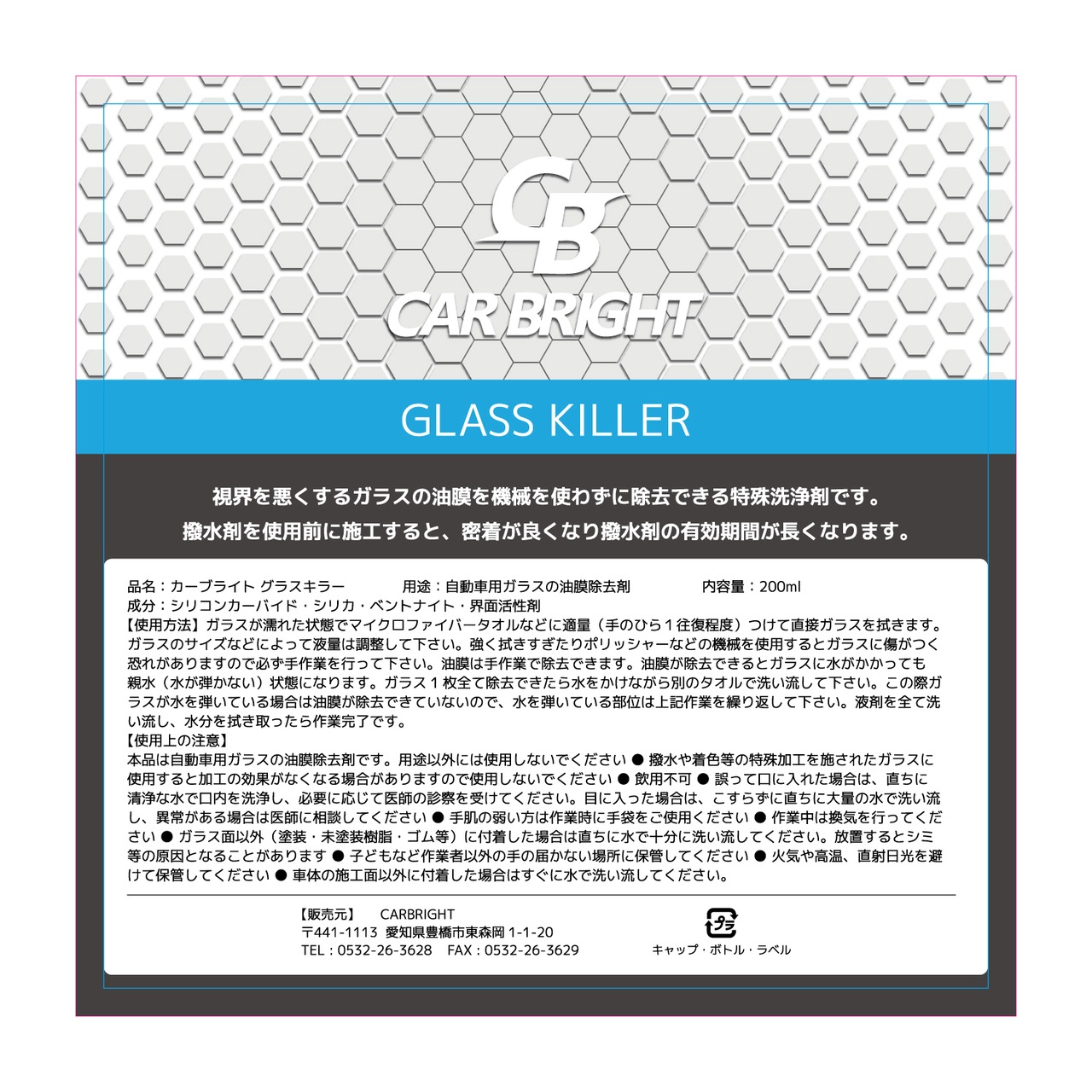 用途:自動車ガラス用 油膜除去剤